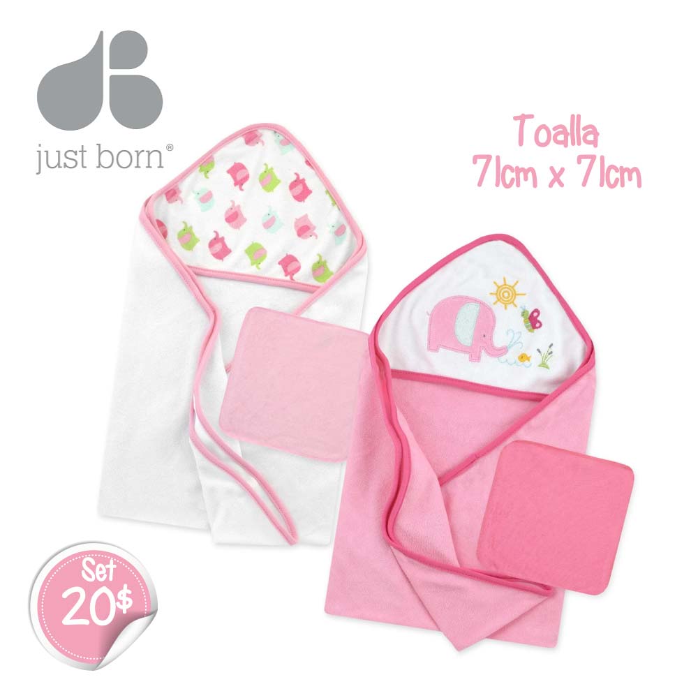 2 Toallas con Capucha + 2 Toallitas 71cm x 71cm