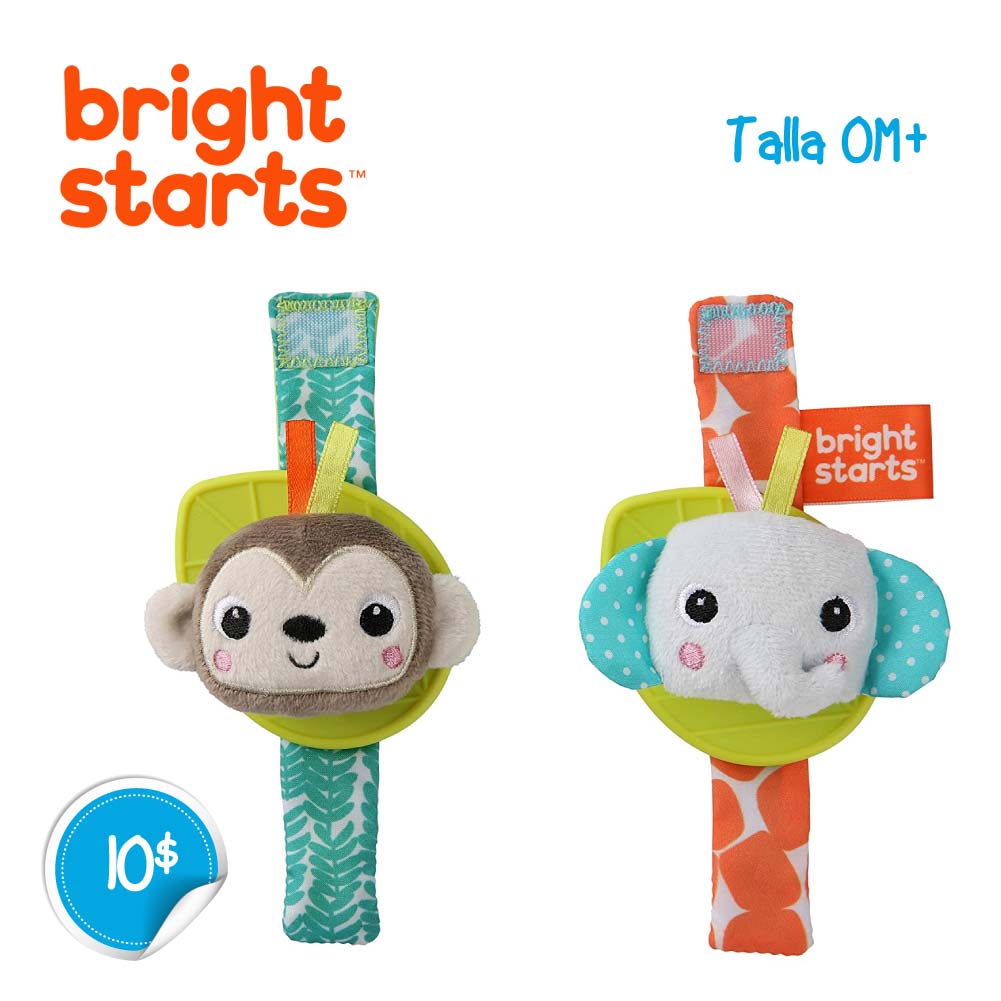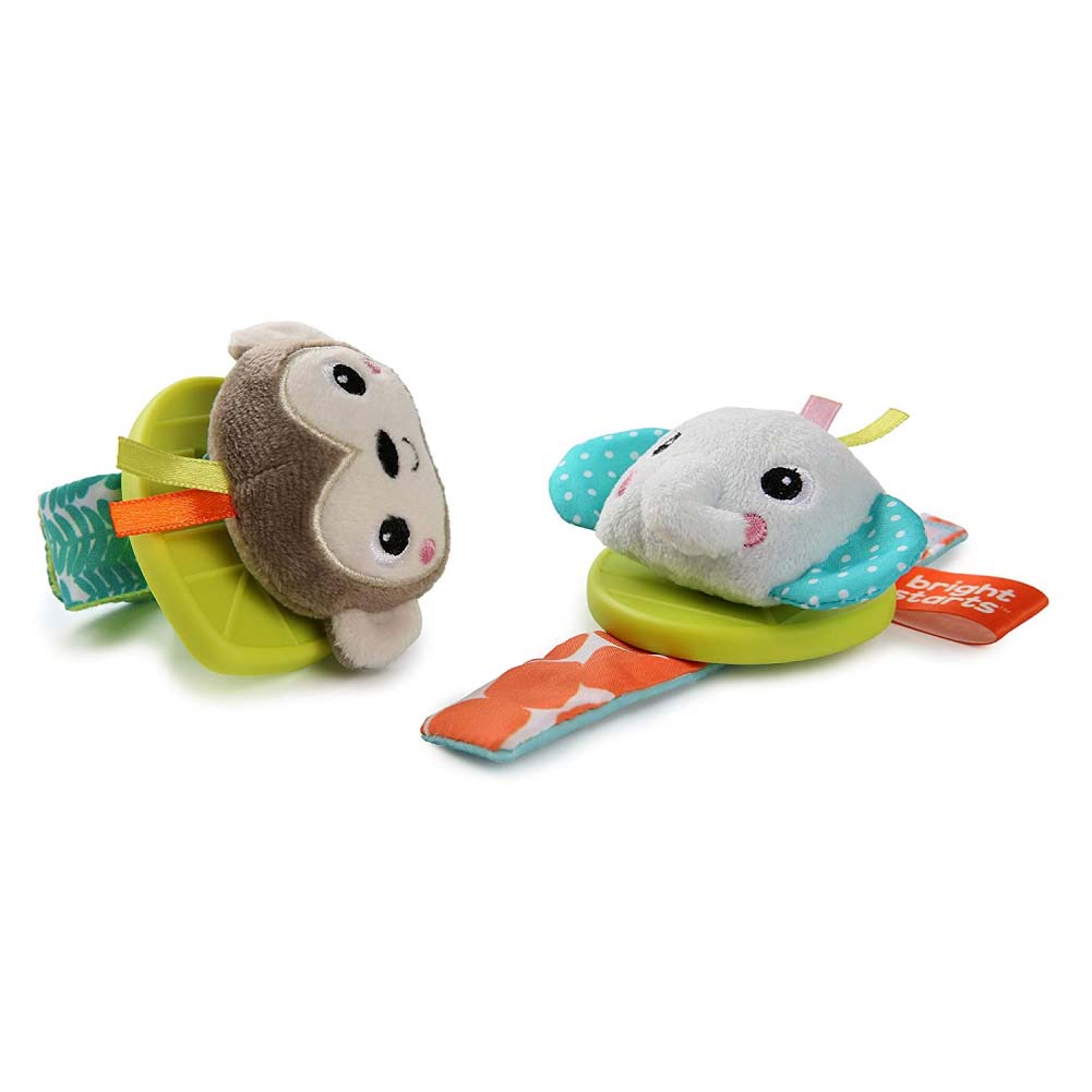 Bright Starts Rattle & Teethe muñeca de juguete – Mono y elefante