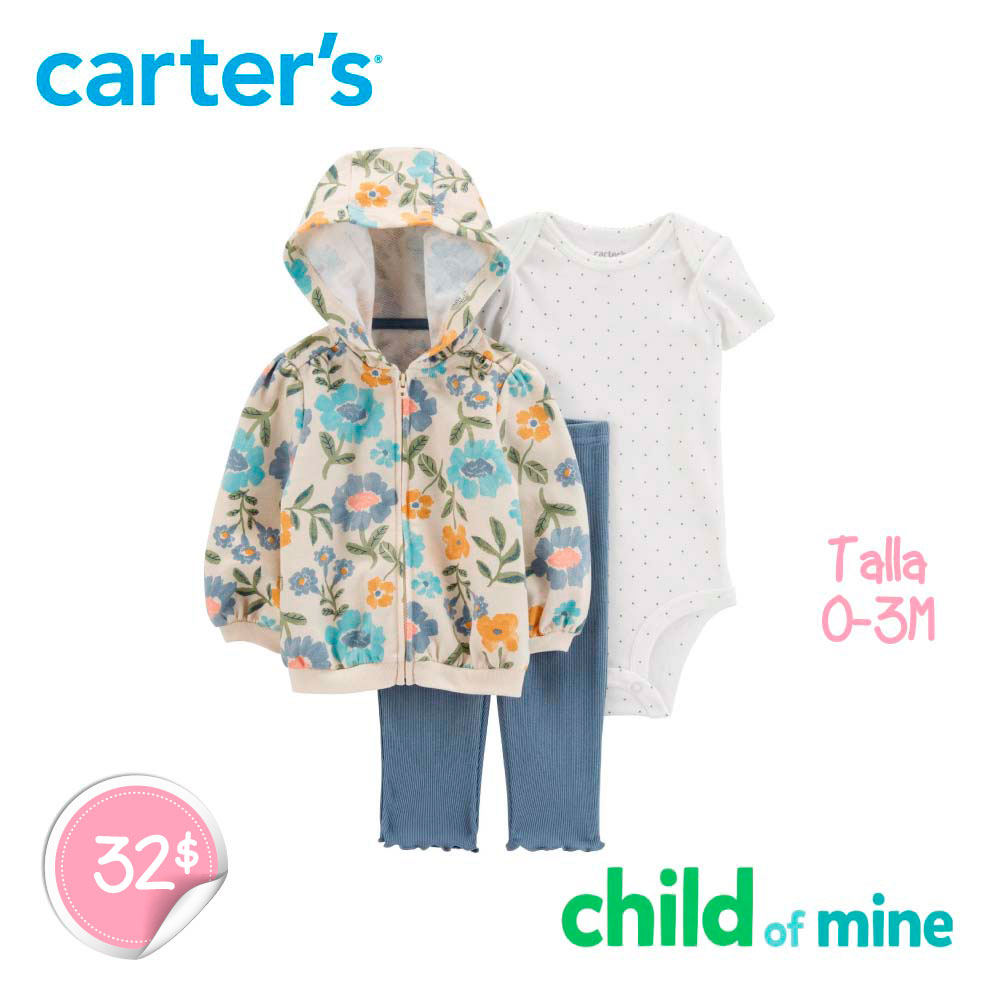 Conjunto con Capucha Flores de 3 piezas cantidad
