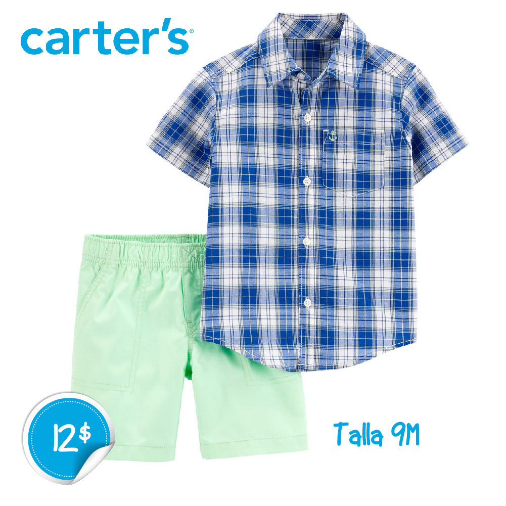 Conjunto de 2 piezas de camisa a cuadros con botones al frente y pantalón corto de popelina
