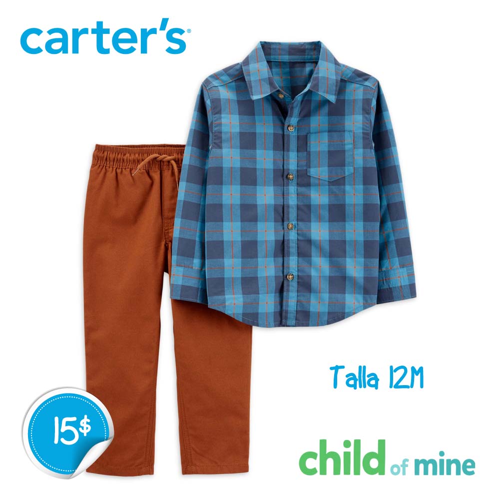 Conjunto pantalón con camisa azul a cuadros