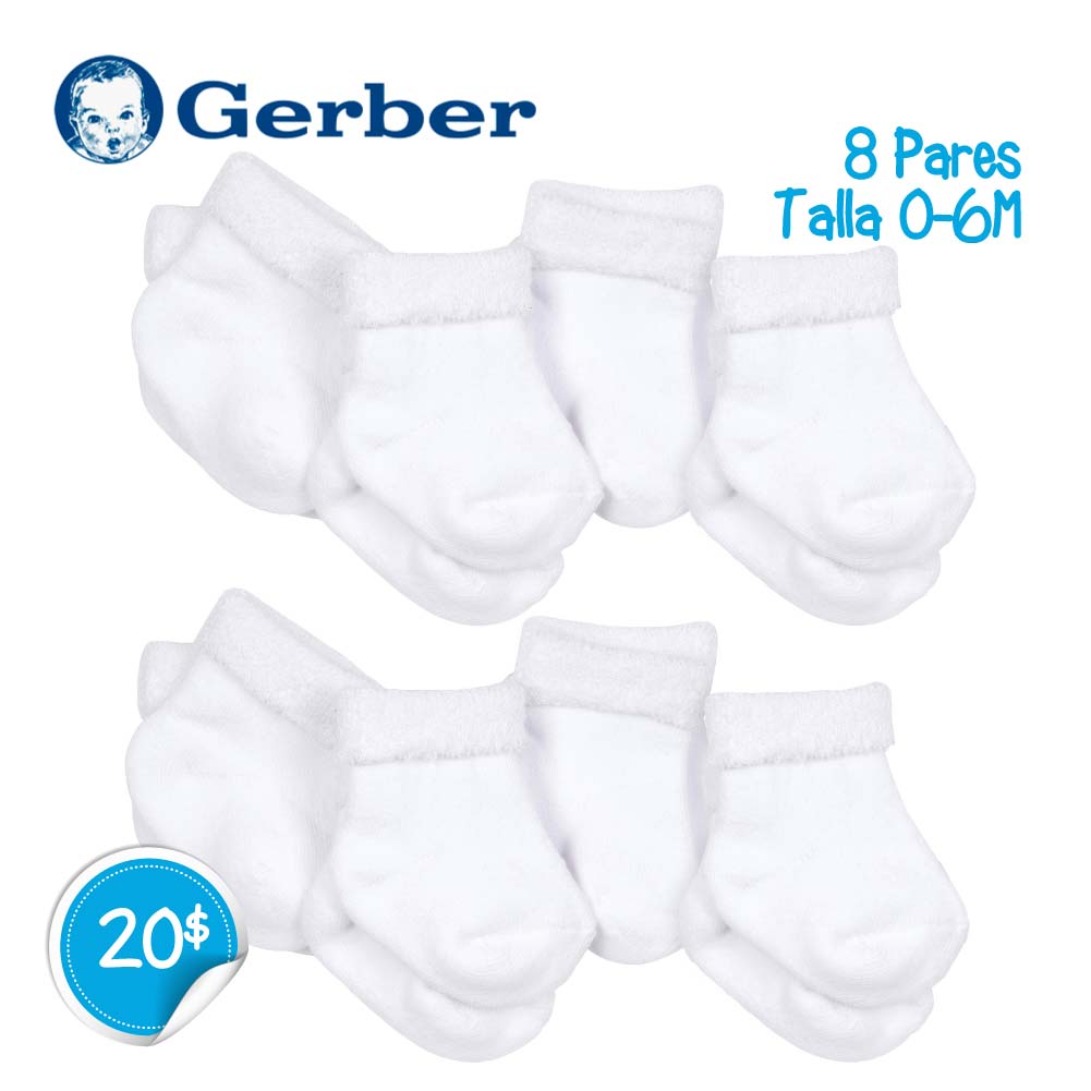 Pack de 8 pares medias Gerber blanco