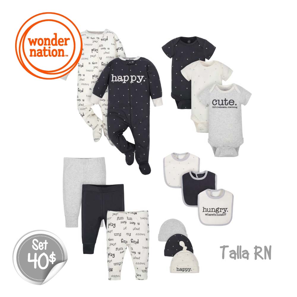Set de 2 Enterizos + 3 Bodys + 3 Monitos + 3 Bucheros + 3 Gorritos