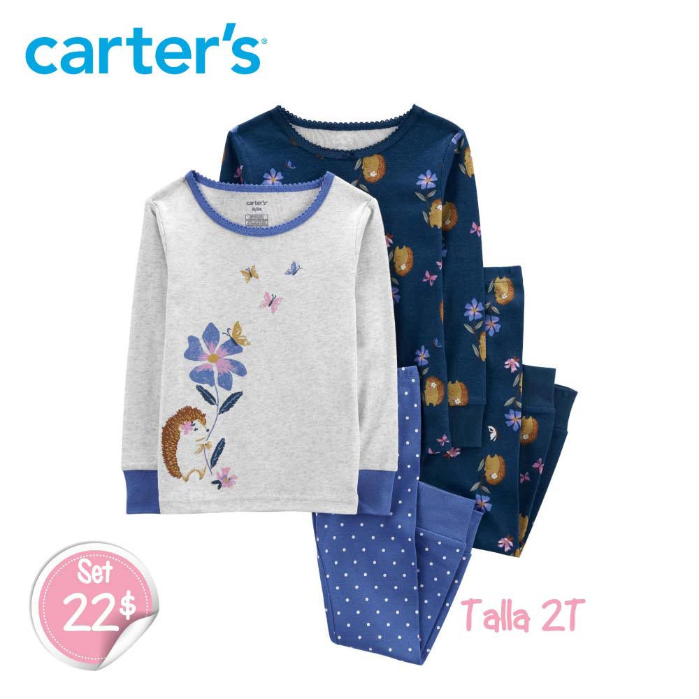 Set de 2 Pijamas Erizo Mariposas de 4 piezas