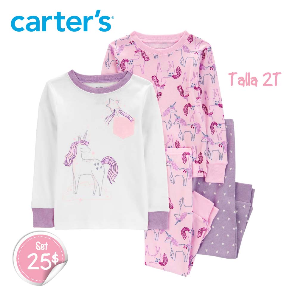 Set de 2 Pijamas Rosadas y Flores (4 piezas)