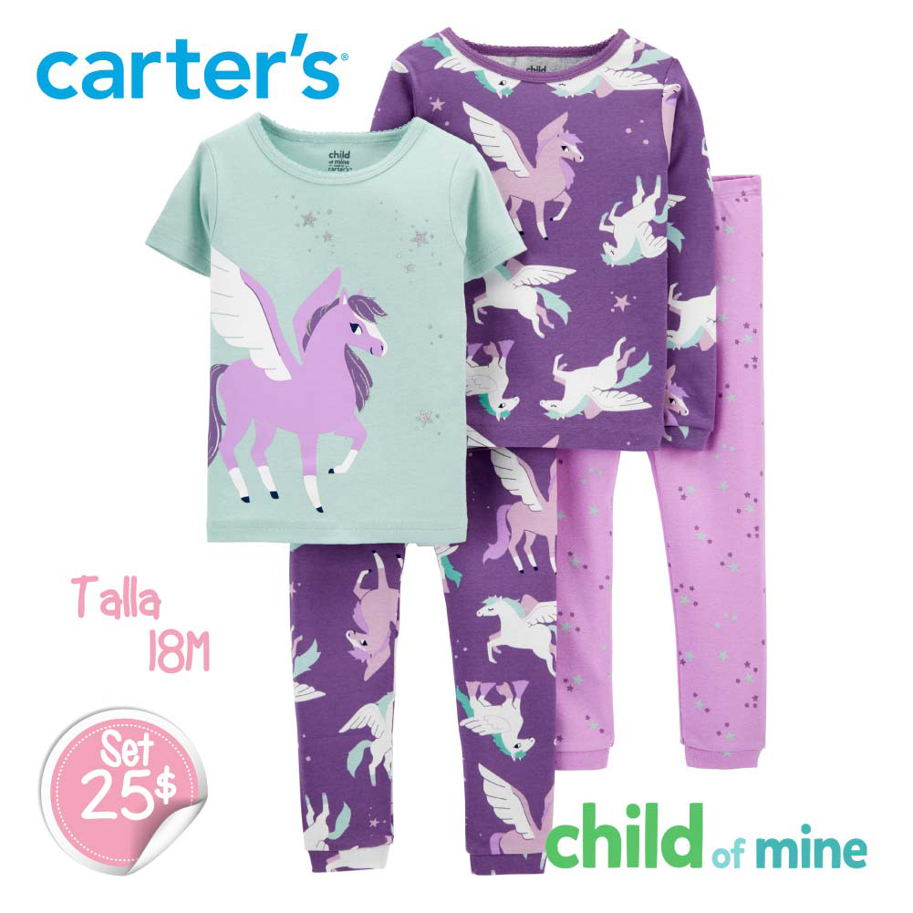 Set de 2 Pijamas Unicornios de 4 piezas