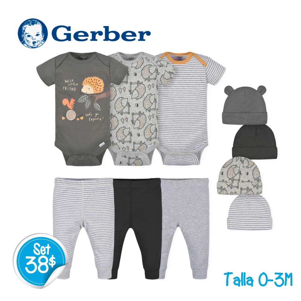 Set de 3 Bodys + 3 Monitos + 4 Gorritos Hello!