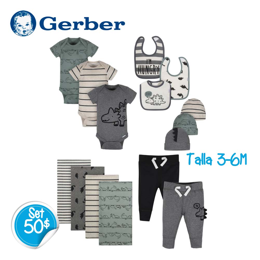 Set de 3 bodys Dinos + 2 Monitos + 3 Gorritos + 3 Bucheros + 4 Pañales de Telas
