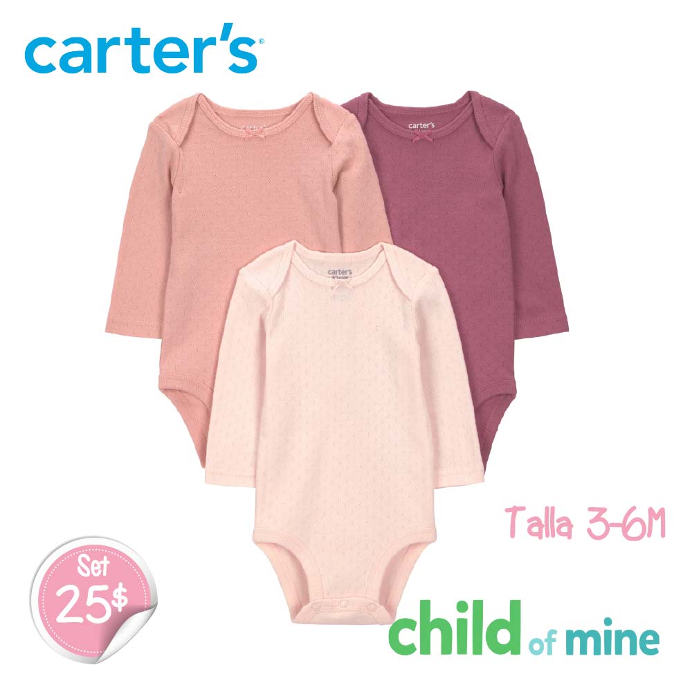 Set de 3 Bodys Manga Larga Rosados cantidad