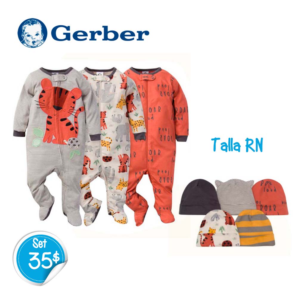 Set de 3 Enterizos + 5 Gorritos Tigre