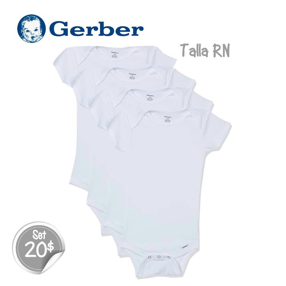 Set de 4 Bodys Blancos Manga Corta Unisex