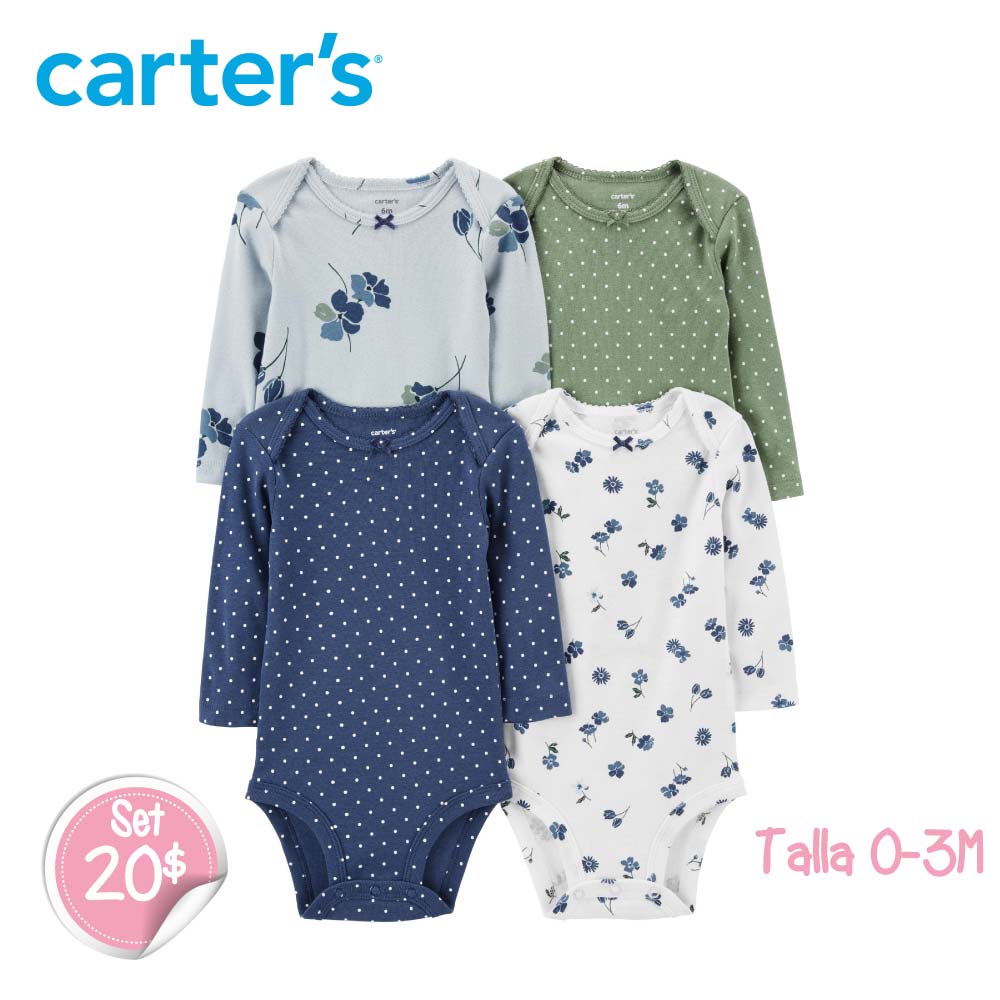 Set de 4 Bodys Flores Azules