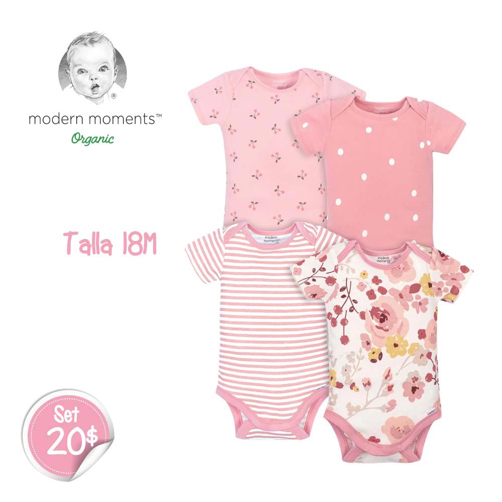 Set de 4 Bodys Flores Rosadas