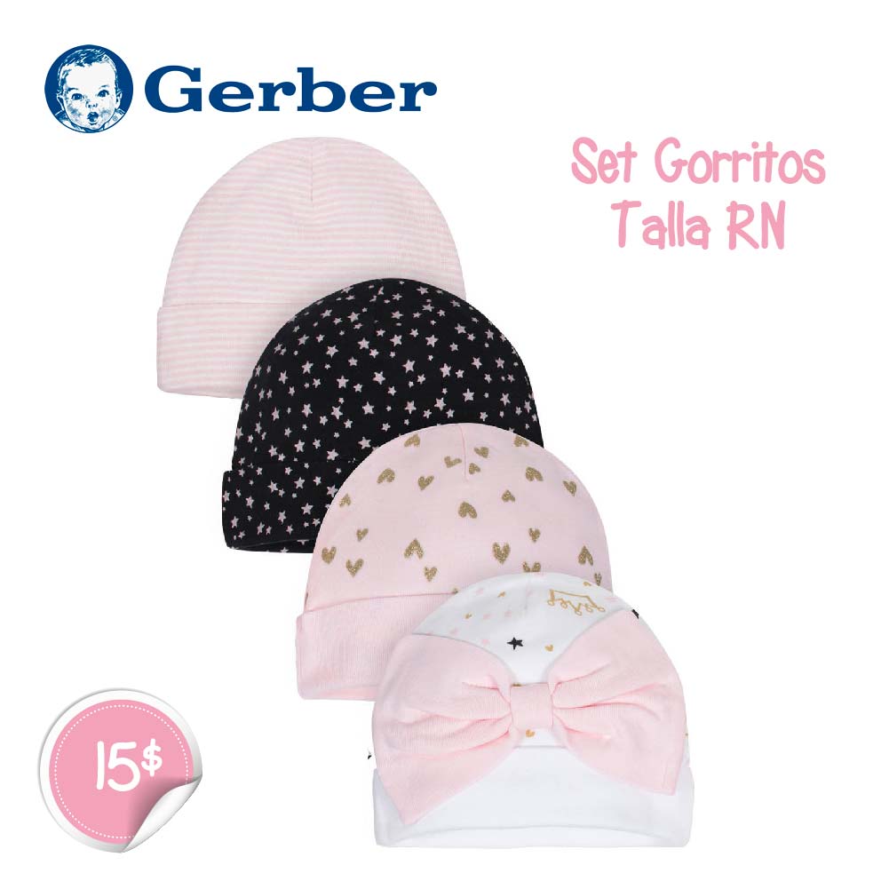 Set de 4 Gorros Gerber para niña